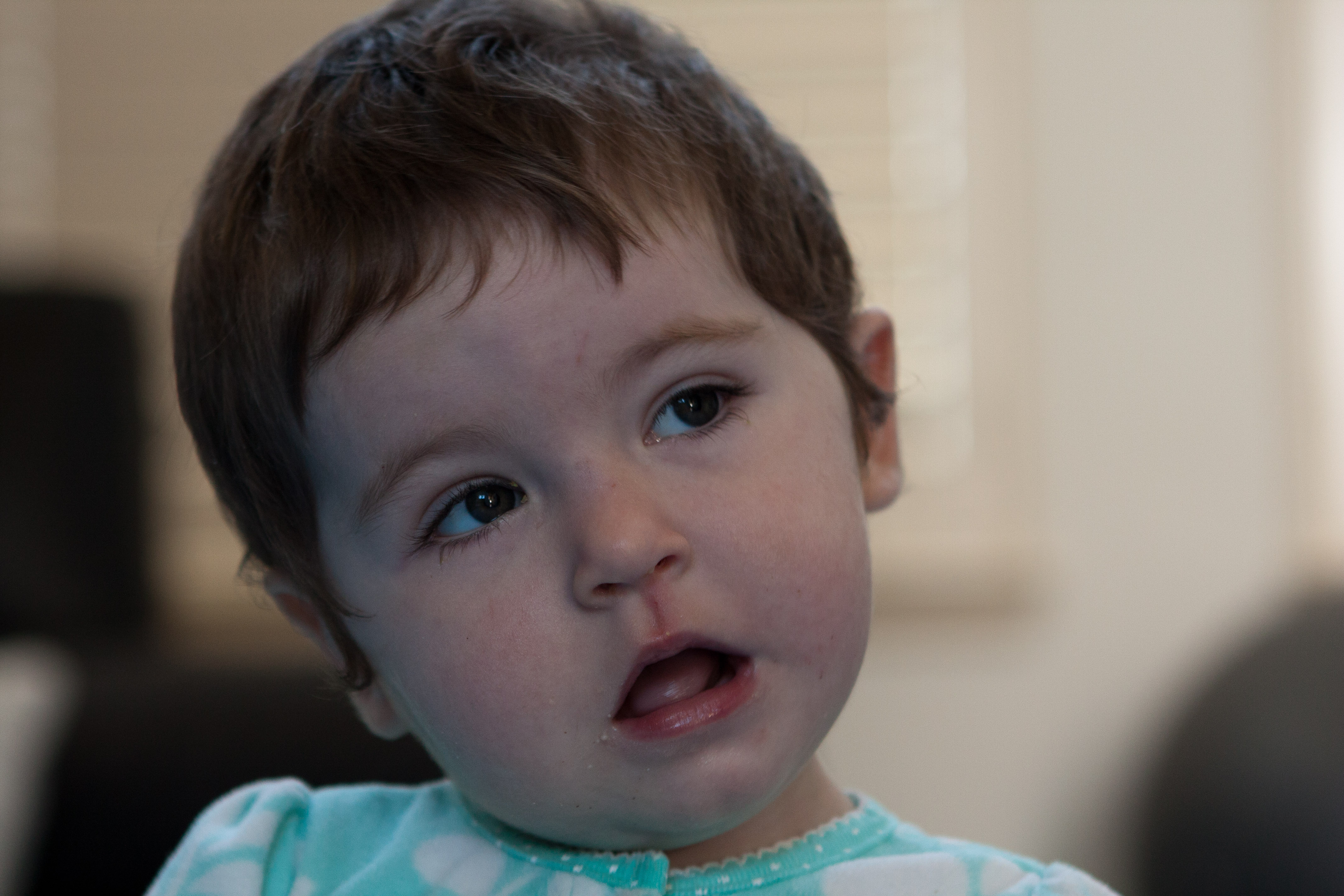 She is 4 weeks post-operative, and she is well.  We have started to titrate down some of her medications, but she is still on basically the same panel of medications that she was prior to the operation.  This is keeping her quite sedated.  We are starting to reduce the Onfi first, and see how she responds.  Despite the level of sedation, we are happy to report significant changes.  The biggest change we have seen is the engagement in her environment.  She seems to see her world differently now than she did prior to the surgery.  I looked at her over the crib rail one day and she smiled at me without any stimulation or sounds from me.  To most of you that may sound silly or trivial to bring up, but for me personally, it was profound.  She had never done that before and more importantly, it was a sign that at some level, her brain is working correctly.
