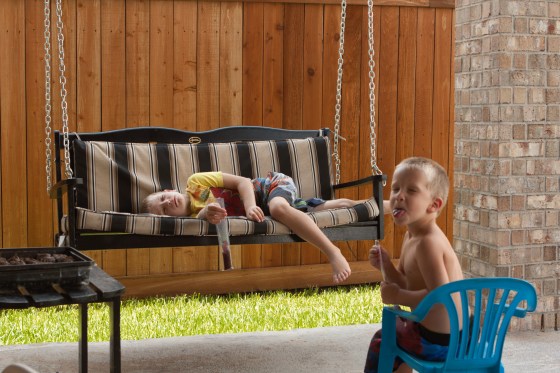 She can play with her brothers for longer periods of time (without me!!) on a somewhat regular basis. She will do this when the activity is something she prefers. She LOVES the trampoline and the swing set.