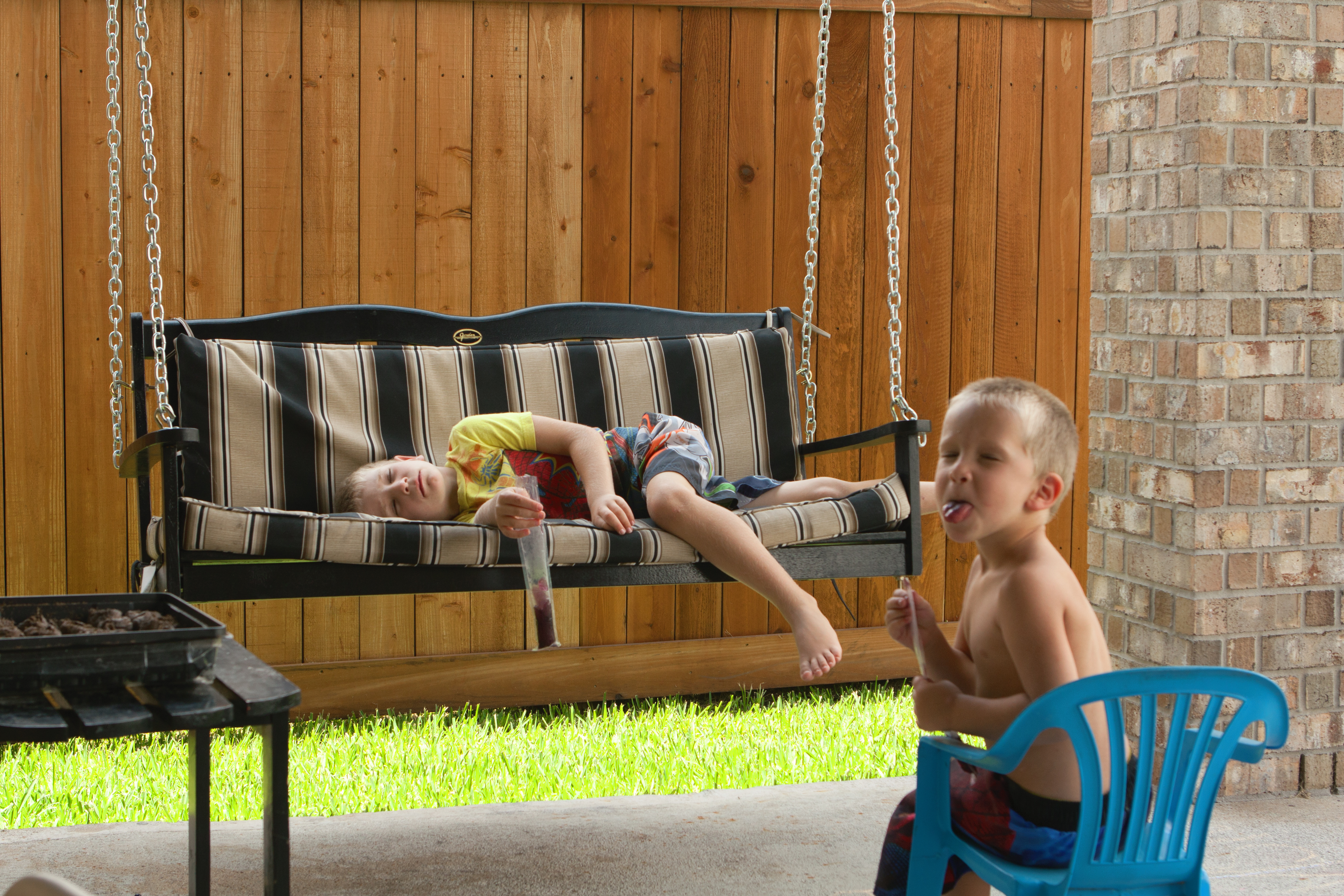 She can play with her brothers for longer periods of time (without me!!) on a somewhat regular basis. She will do this when the activity is something she prefers. She LOVES the trampoline and the swing set.