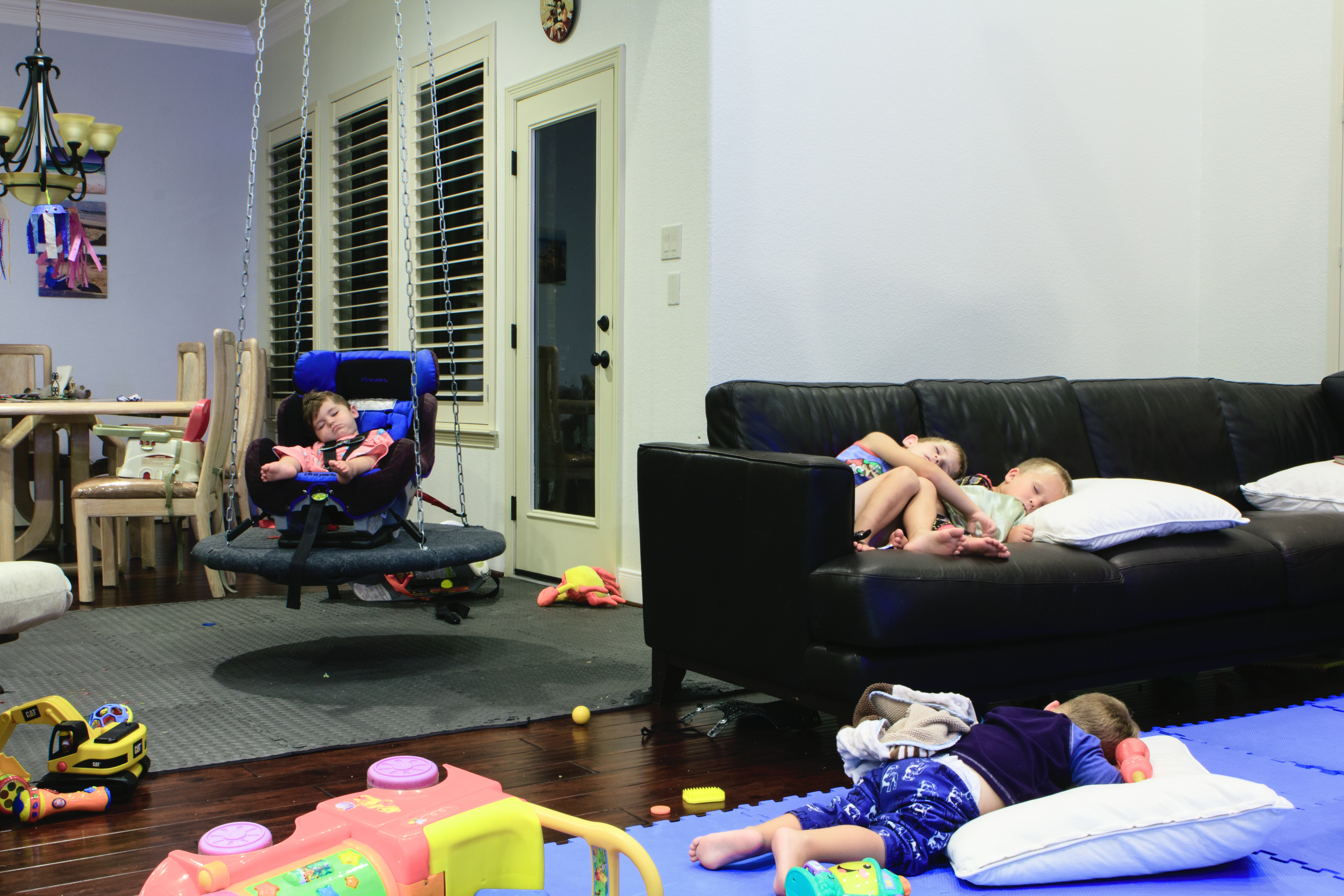 She loves to get in the middle of the action with the boys. When she is in a good mood, she is right there with them. She is often the first one hurt and crying. I generally push her back “into the octagon” and gently give the boys some additional operating parameters. A pillow fight for example, is a great way to experience a lot of heavy sensory input.